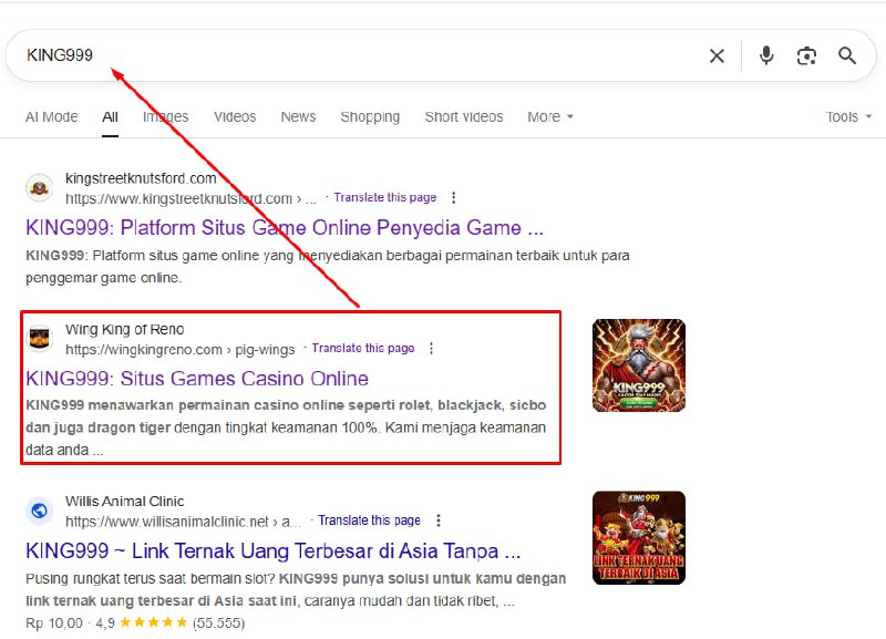 Boom. The “pig-wings” page is chilling at #2 for “KING999” on Google Indonesia. Not bad for a site that was nearly invisible a few weeks before.